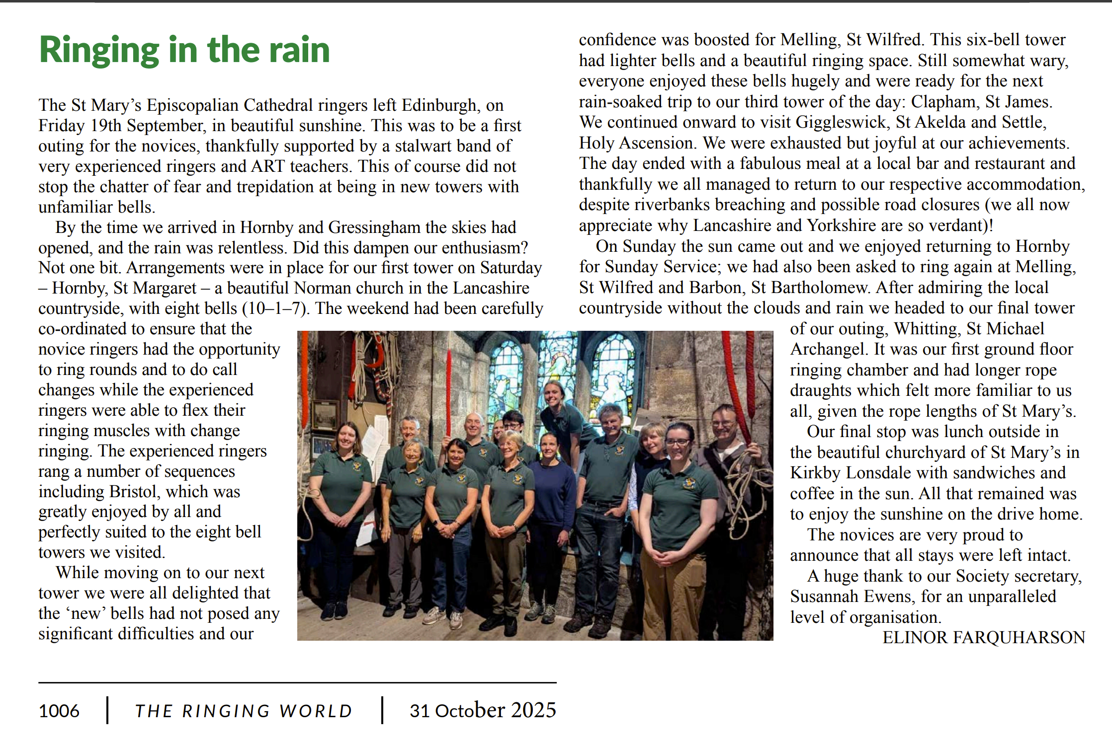 - Edinburgh St Mary's Episcopal Cathedral: Ringing in the Rain. The Ringing World, 31 Oct 2025. Link to the Ringing World issue that this appears in: click here.
